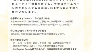 サロンのお知らせ ホームページは即時予約で、よりスムーズになりました ホームページからのご予約は 11/10より【即時予約】 に対応いたしました。ご予約がよりスムーズになりました✨これまでの... 2025.11.13 サロンのお知らせ