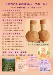 ハーブボールは温活ケアに合わせたタイ伝統ハーブがぎっしり詰まっています