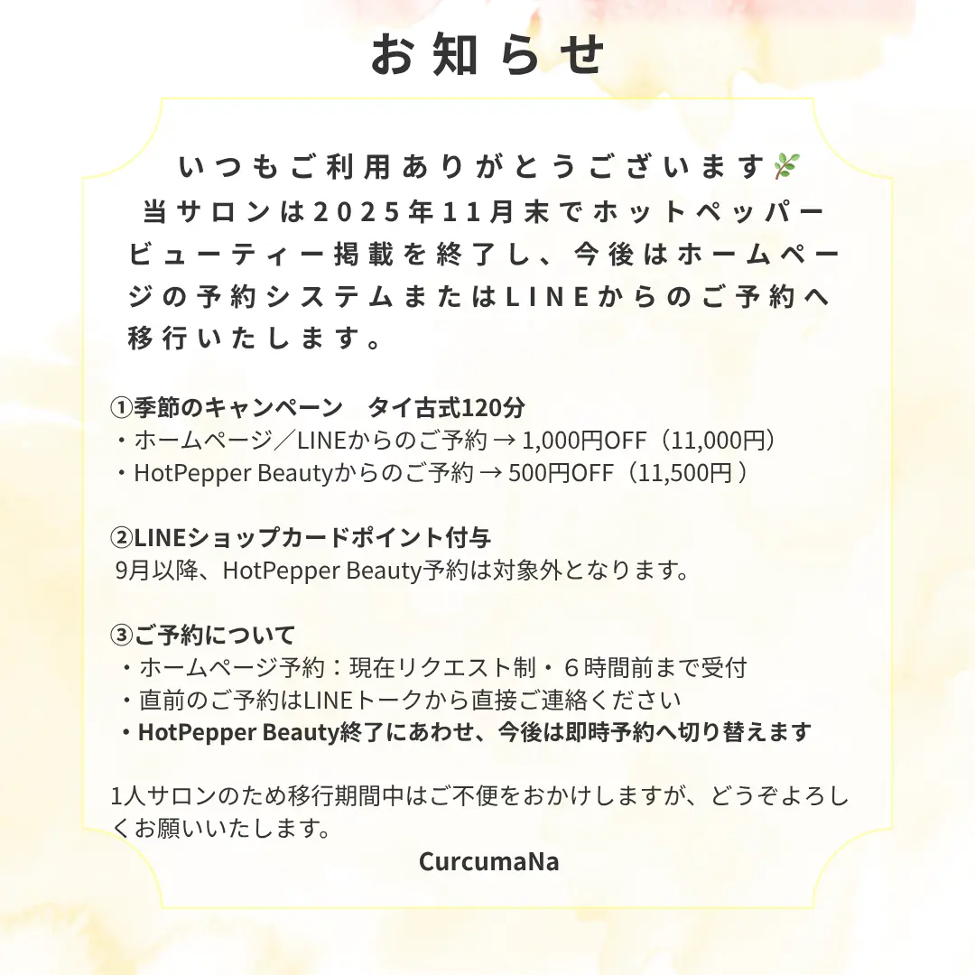 CurcumaNa(クルクマナ)│都立大学駅前タイ古式&ハーブボール/女性専用サロン
